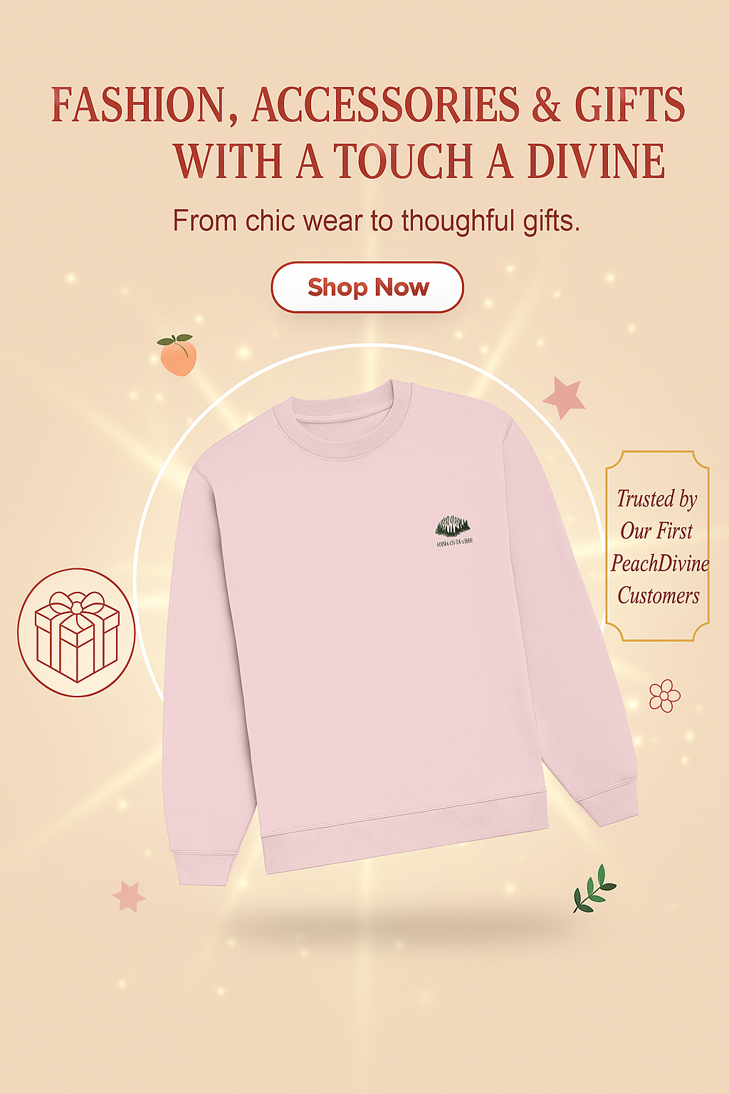 Forest Emblem – Blush Pink Sweatshirt | Peach Divine – Mini Nature Crew Mini Mountain Badge – Soft Pink | Unisex Sweatshirt