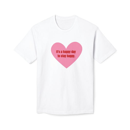 Positive Vibes Unisex Midweight T-shirt - "It's a Happy Day to Stay Happy"