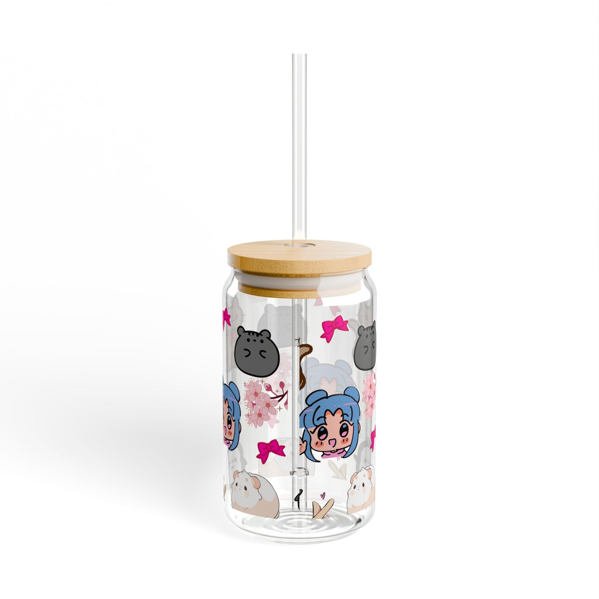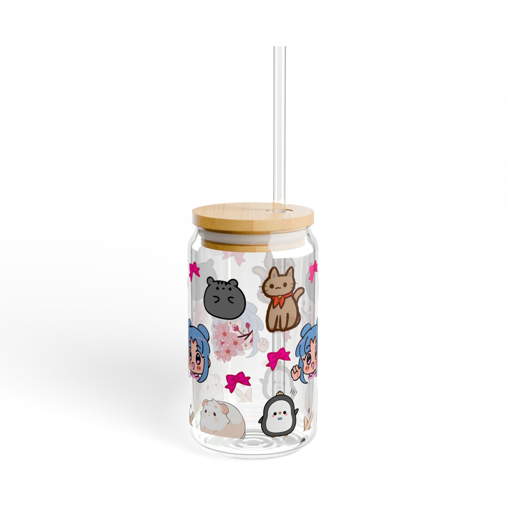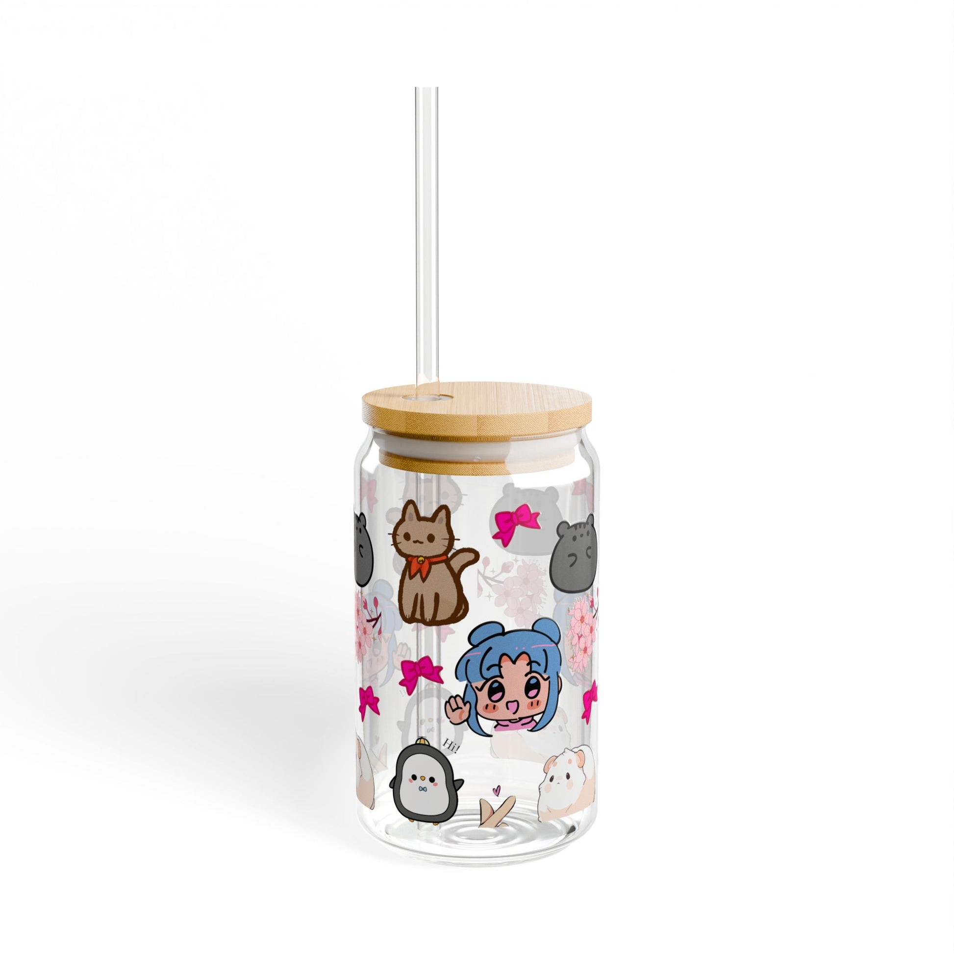 Cute Character Sipper Glass - 16oz with Straw and Wooden Lid | Anime lover