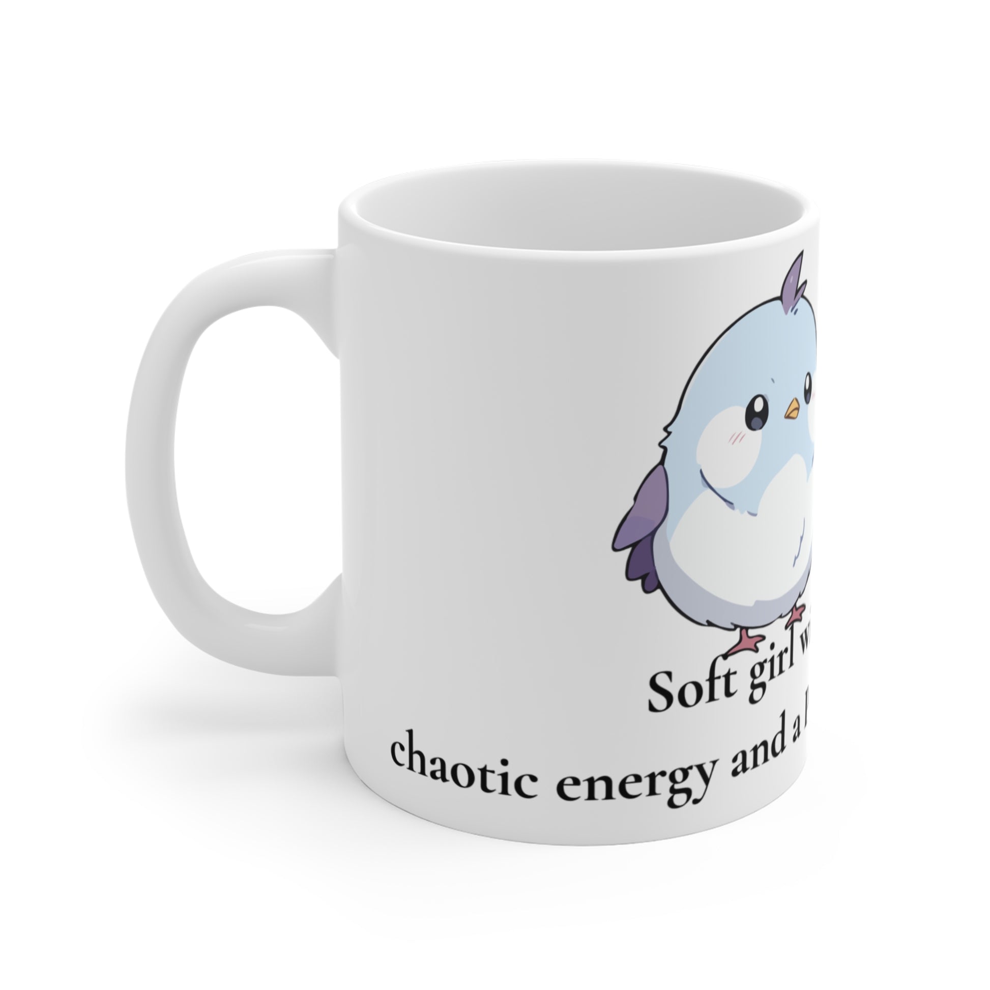 Cute Soft Girl Mug | 11oz Coffee Cup with Bird Design & Empowering Quote