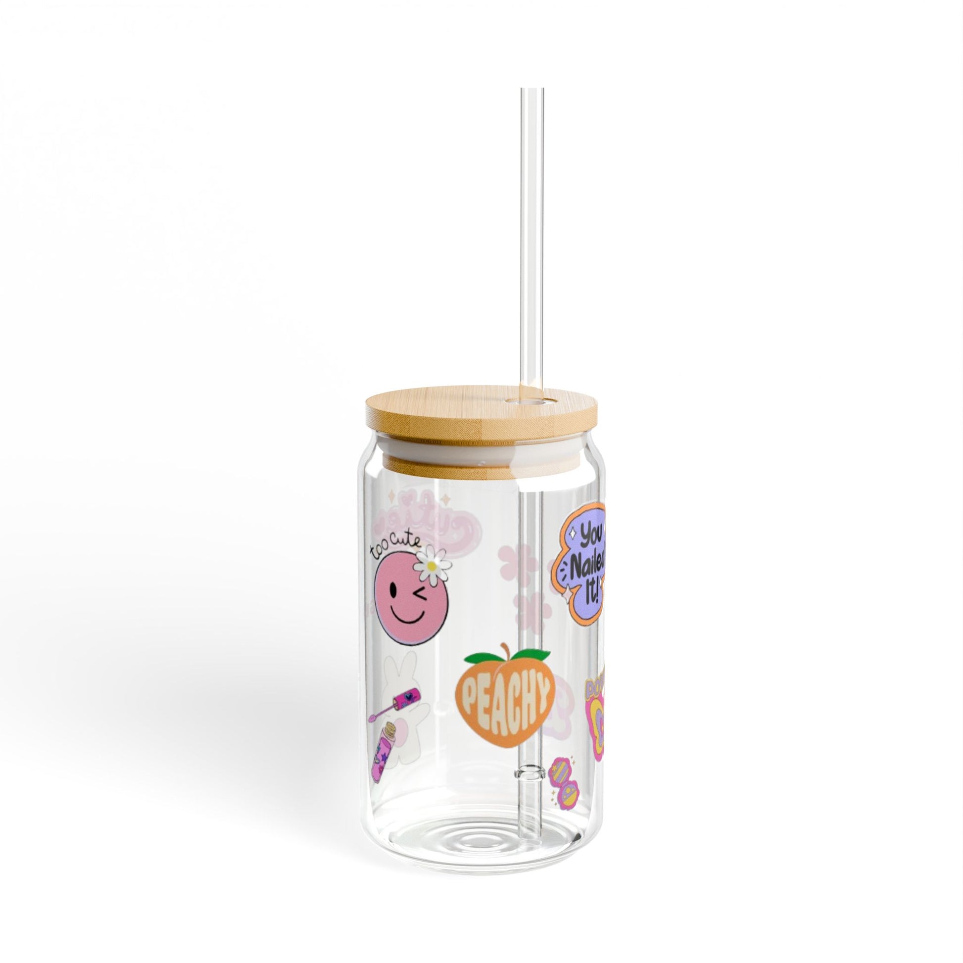 Eco-Friendly Sipper Glass with Fun Stickers - 16oz
