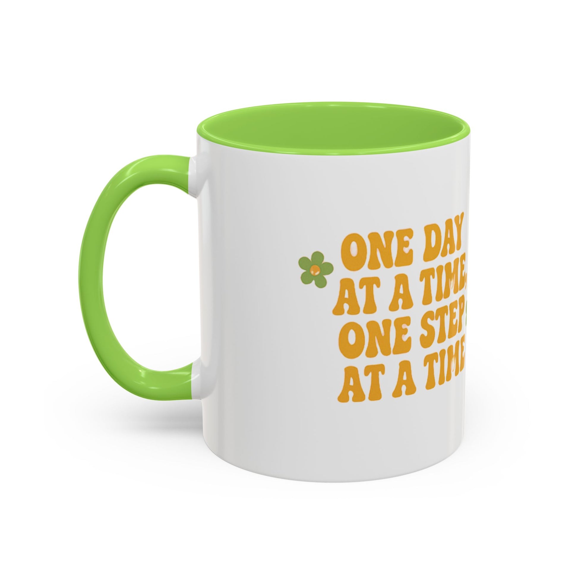 Inspirational Colorful Mug - 'One Day at a Time' Coffee Tea Cup - 11oz & 15oz Options | Daily Affirmation Ceramic Mug Positive Message Drink Ware | Motivational Morning Mug