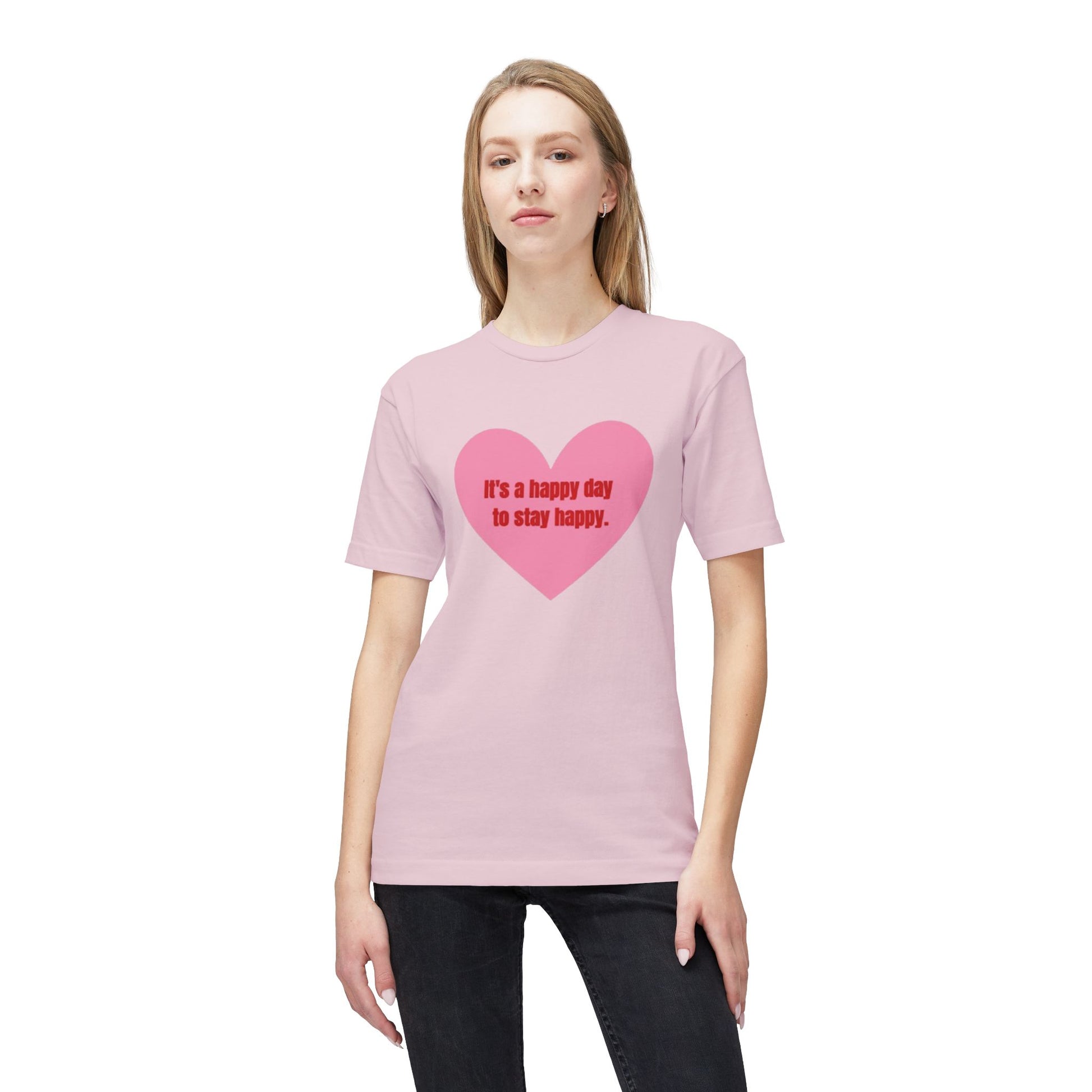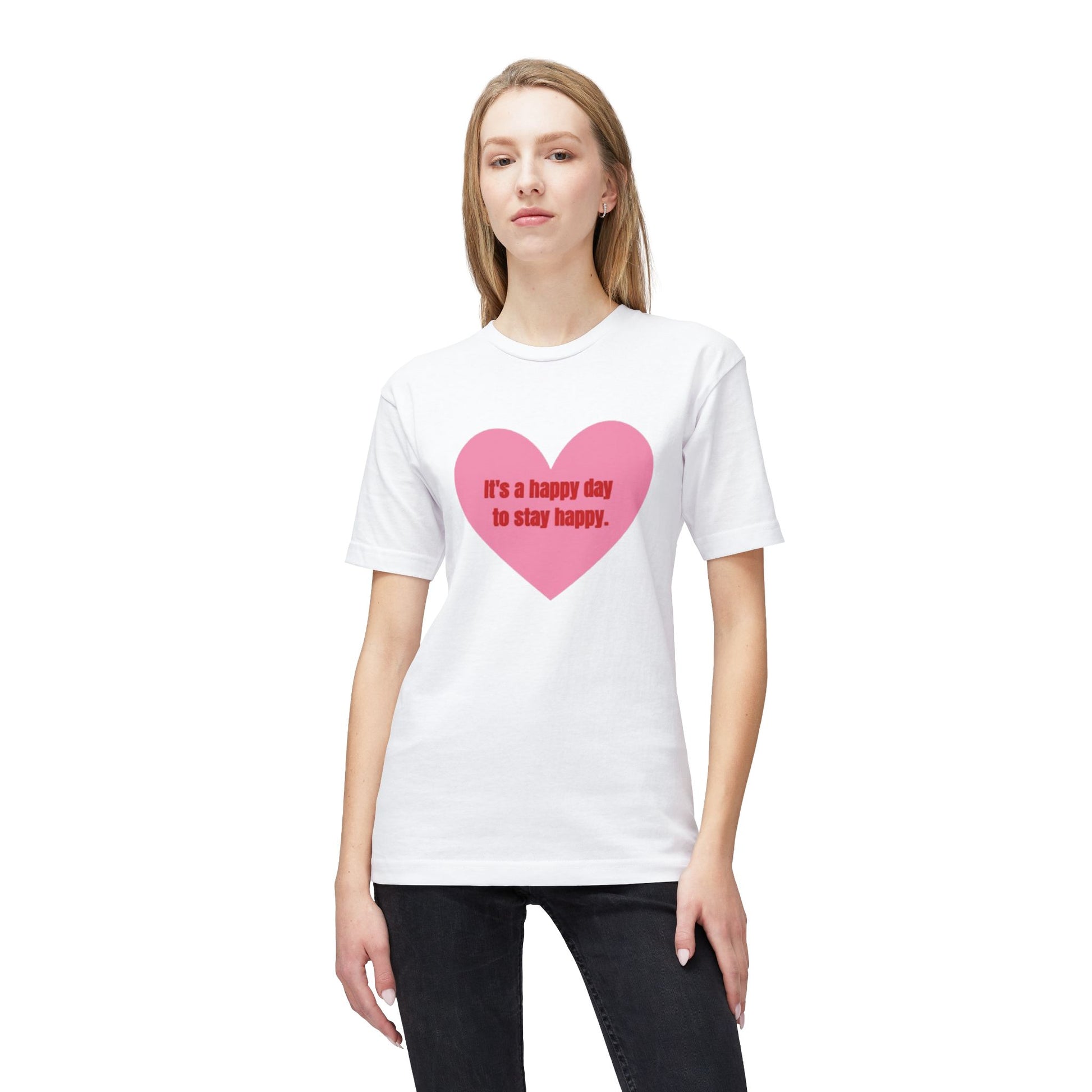 Positive Vibes Unisex Midweight T-shirt - "It's a Happy Day to Stay Happy"